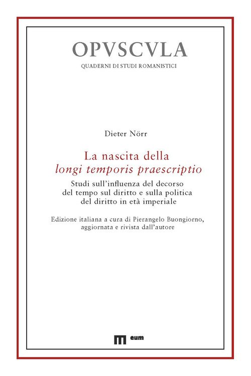«Ci sono libri che, nella loro essenzialità, aiutano a intravedere giardini oltre le siepi. Ci sono studiosi che, con la loro padronanza del sistema delle fonti, possono, sanno e hanno il pieno diritto (forse anche il dovere) di muoversi agevolmente fra i dogmi, rimettendoli in discussione e ponderandone l'effettiva portata in prospettiva storica, nel lento evolversi dell'esperienza giuridica romana al mutare delle coordinate di spazio e di tempo. Dieter Nörr e la sua ampia produzione scientifica - che spazia dai diritti greci sino all'epoca bizantina, dal diritto pubblico alle strutture del diritto privato, dall'epigrafia alla teoria del diritto - ne sono un nitido esempio. Non è compito di chi scrive, e peraltro in questa sede, dimostrarlo. Eppur tuttavia, lo scritto sulla longi temporis praescriptio, che adesso si ripubblica in traduzione italiana e con qualche aggiornamento dell'autore, si colloca a pieno diritto in questo solco...» (Pierangelo Buongiorno)