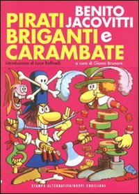 Fin dai suoi esordi, Benito Jacovitti ha goduto di grande popolarità presso i lettori del settimanale "Il Vittorioso", per i quali fra il 1940 e il 1956 creò decine di racconti, appartenenti ai generi più diversi. Incentrò storie sui briganti, da quelli esotici tipo i Quaranta ladroni della favola a quelli ottocenteschi italiani, con cappelloni, tabarro e archibugio; raccontò pirati e corsari, anche per fare il verso ai famosissimi eroi di Salgari; irruppe nel cappa e spada, sbeffeggiando il mondo dei "Tre moschettieri". Gli undici racconti riproposti in questo volume, mostrano come Jacovitti, in qualunque contesto si muovesse, rimaneva felicemente sé stesso, ricco di quel sadismo beffardo eppure candido che caratterizza tutta la sua personalità creativa, fino a parodiare le proprie creature (come nel caso del corsaro Cocco Bill, che disloca dalle praterie del West ai cavalloni dell'oceano). Introduzione di Luca Raffaelli.
